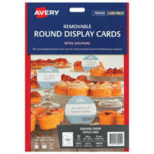 AVERY 980049 16153 ROUND DISPLAY CARDS REMOVABLE 4UP W104 X L108MM 8 SHEETS WHITE