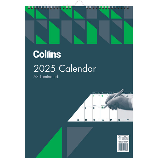 COLLINS CALENDAR WIRO MONTH TO VIEW LAMINATED A3 ODD YEAR