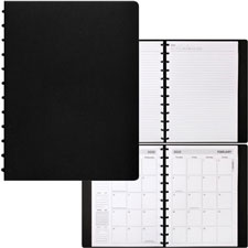 A4 Month to viewHard coverExtensive info section95 ruled pages4 black tabbed boards5 insertable copysafe pockets