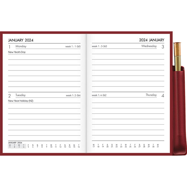 COLLINS DIARY POCKET PENCIL A72PP RED 2 DAYS PER PAGE PVC EVEN YEAR