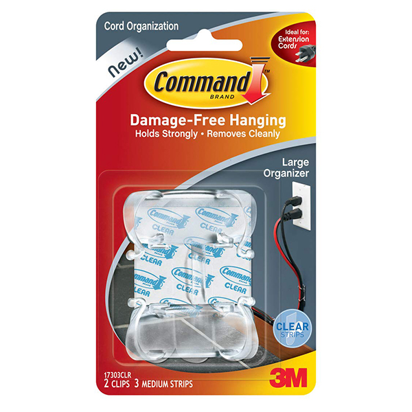 COMMAND CORD CLIP WITH 3 MEDIUM STRIPS MEDIUM CLEAR PACK 2