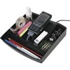 The pencil caddy is the most innovative in the Nouveau range. Multi functional compartments to display stationery products, mobile phones and ipods