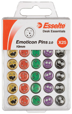 ESSELTE NOVELTY PINS EMOTICONS 1.0 11MM PACK 25