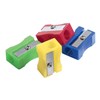 Keep your pencils sharp with this plastic single hole sharpener. Assorted colours. Purchase 24 to receive a box.