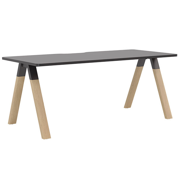 Ligna legs feature a black powdercoated connector bracket and solid oak legs with a natural timber finish