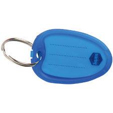 Translucent moulded plastic key tag with a 25 mm split ring and double-sided insert paper