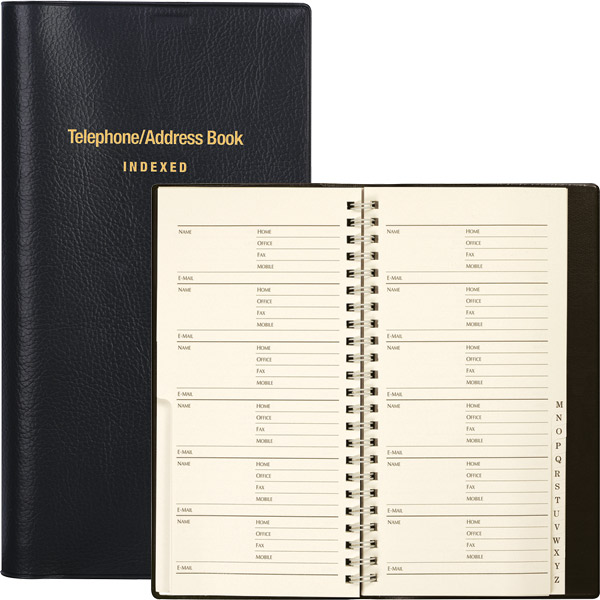 MILFORD ADDRESS BOOK TELEPHONE SPIRAL BOUND W110 X L210 MM BLACK