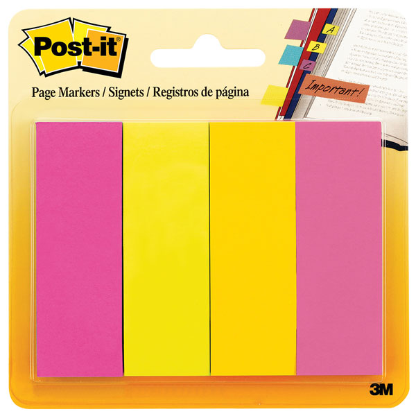 Post-it page markers in assorted bright colours and are easy to write on to leave notes where you need them
