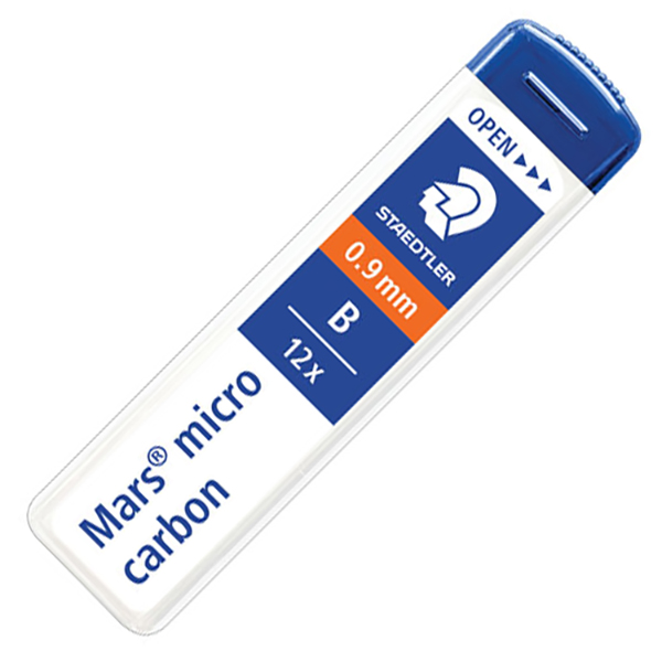 STAEDTLER 250 MARS MICRO CARBON MECHANICAL PENCIL LEAD REFILL B 0.9MM TUBE 12