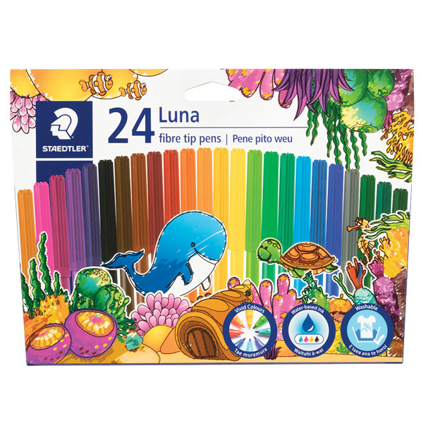 STAEDTLER LUNA FIBRE TIP PEN ASSORTED COLOURS PACK 24
