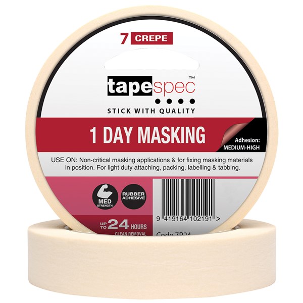 Tapespec No.7 crepe masking tape is designed for short term (24 hour) interior masking.