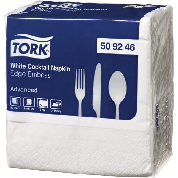 TORK 3100022 COCKTAIL NAPKIN EMBOSSED 2 PLY WHITE PACK 100