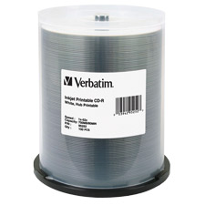 Verbatim 52X White Inkjet, Hub Printable CD-R discs are the ideal choice for full-colour edge-to-edge photo and text printing on CD/DVD inkjet printers